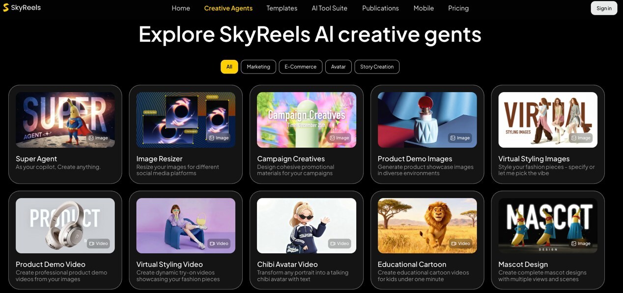 SkyReels is an AI-powered visual content engine. From smart posters and product B-roll videos to audio-visual advertisements, everything can be generated with just one click using in-app templates.